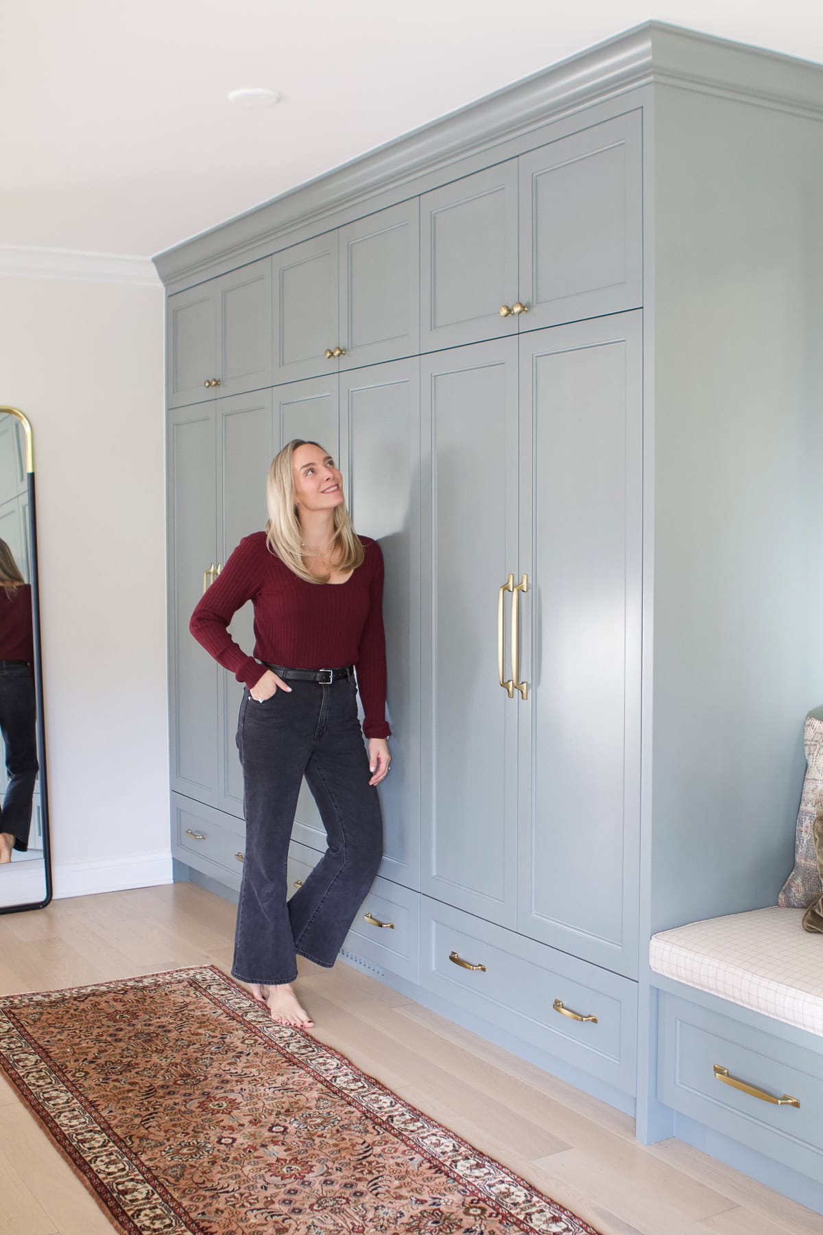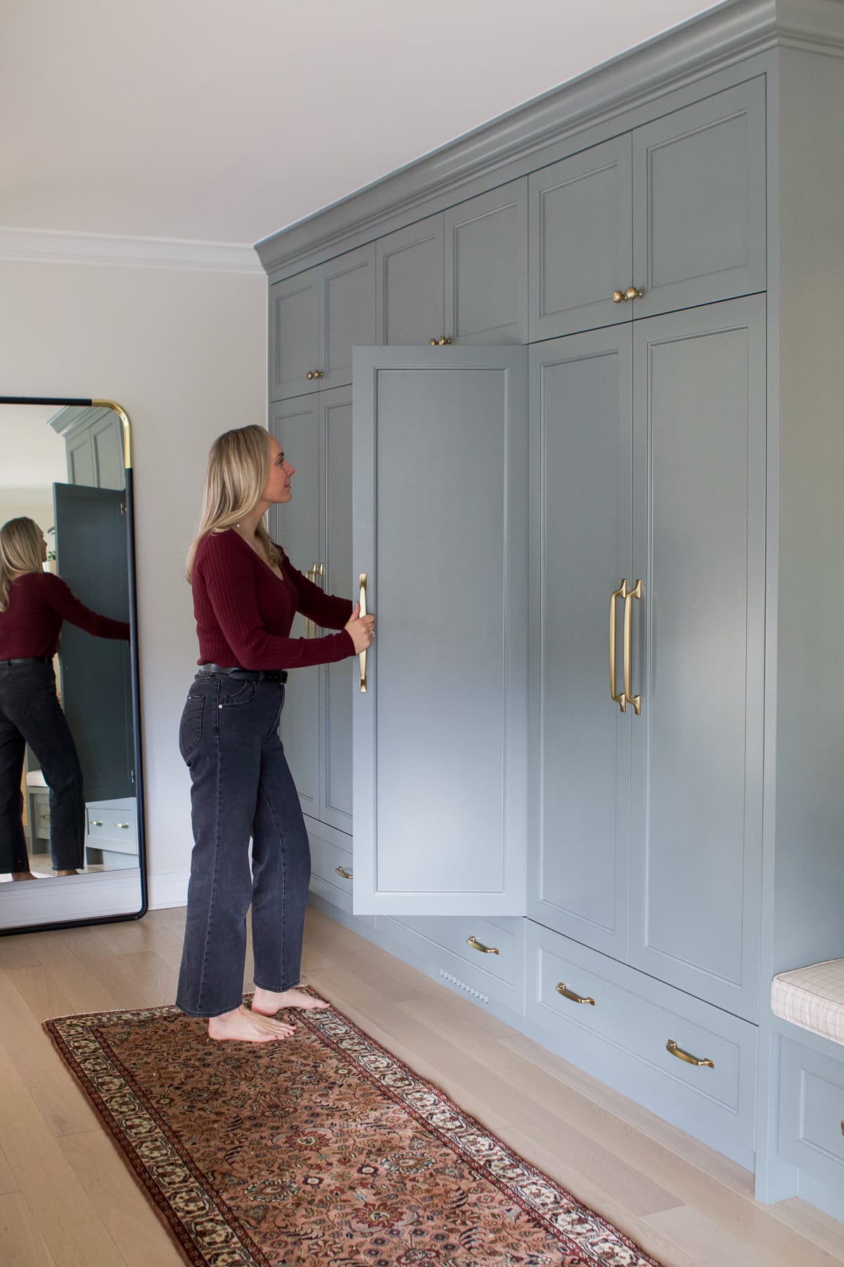 Want to see how we organized inside every single cabinet and drawer? I break down our mudroom cabinet organization for real life right here.