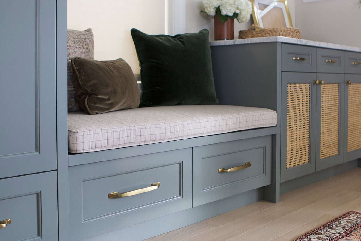 For this space, I went with a subtle check pattern that adds a touch of interest and softness against the cabinetry. (If youโre considering a cushion for your own home, I even have a 10% off code good through the end of the year! Use code DIYPB10)
