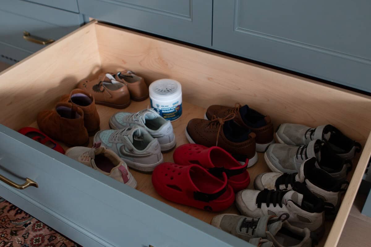 Finn and I also store our everyday shoes in the deep drawers, so itโs easy to keep everything corralled in one spot.