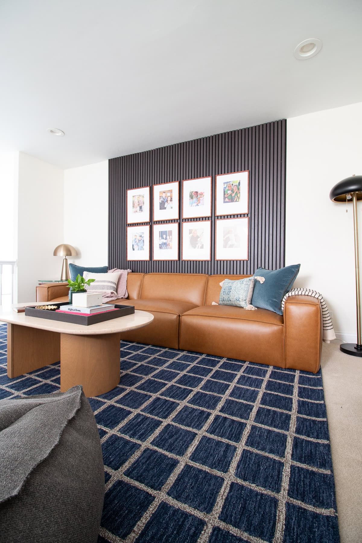 When in doubt, go bigger. A large rug helps anchor the room and creates better visual appeal than one thatโs too small and floating in the middle of your space.
