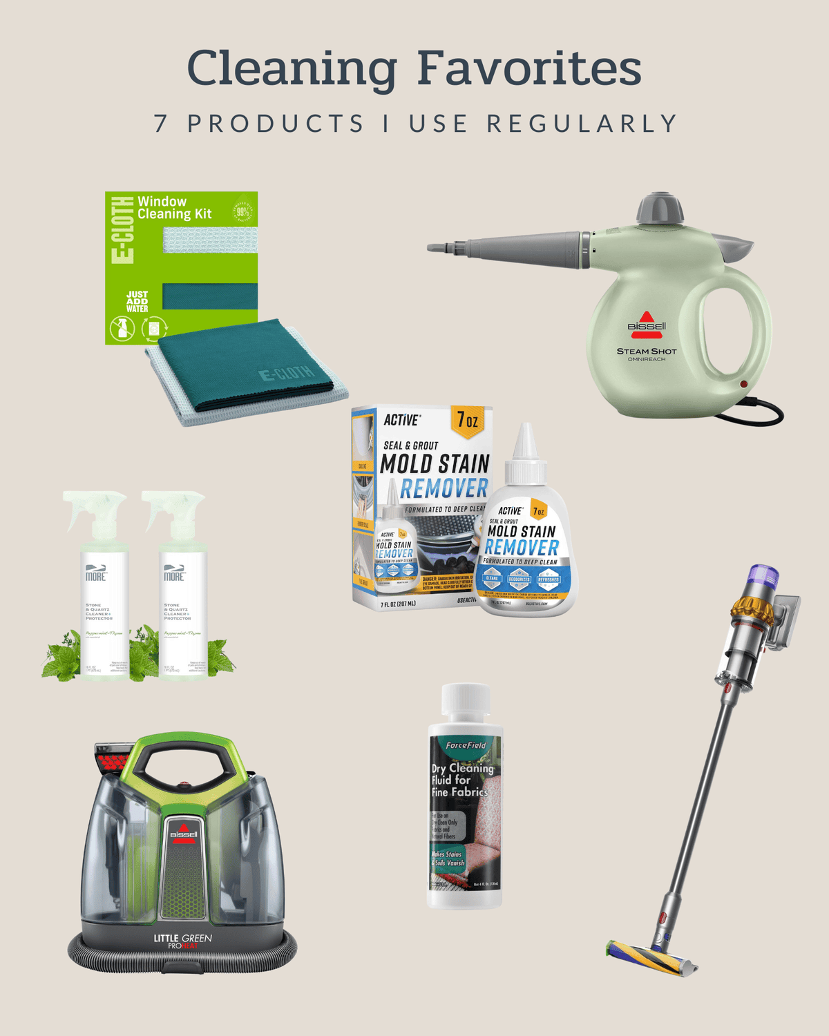 These are the cleaning products that have actually earned a permanent spot in our home. Some are for quick, everyday upkeep; others are for spot cleaning or those deeper jobs that pop up from time to time. But every single one is something I use regularly and would buy again.