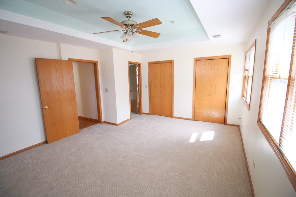 When we purchased our home, one of the first things we did was replace all of the hollow oak doors. Hollow doors are a lot less expensive than solid core doors, so you’ll often find them in new build homes. I would consider upgrading the doors – at least for the bedrooms and bathrooms – to solid ones. Solid doors are so much better for soundproofing those spaces, plus you can choose a new style. I went with a Craftsman style for our doors and they add so much character to our home.