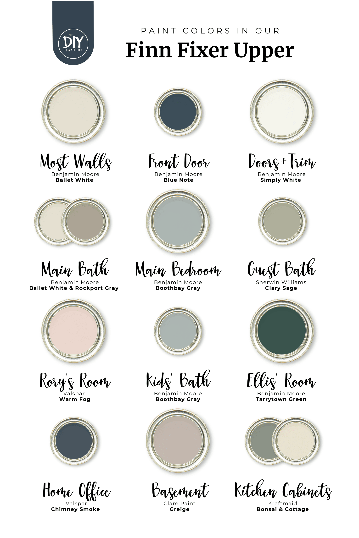 Paint Colors: Benjamin Moore โRockport Grayโ (lower wall) & โBallet Whiteโ upper wall