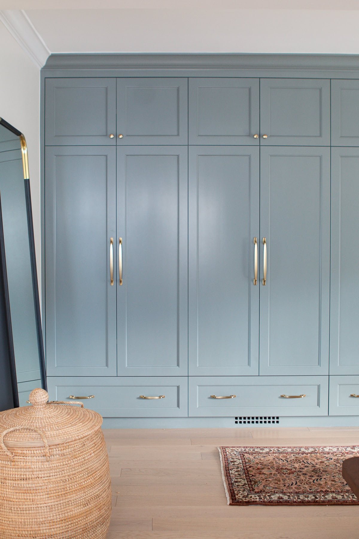 Because these mudroom cabinets were custom-made, my painter actually took a door from our kitchen island to the paint store to have it perfectly color-matched. Iโll include the exact color code below in case you want to try it yourself.