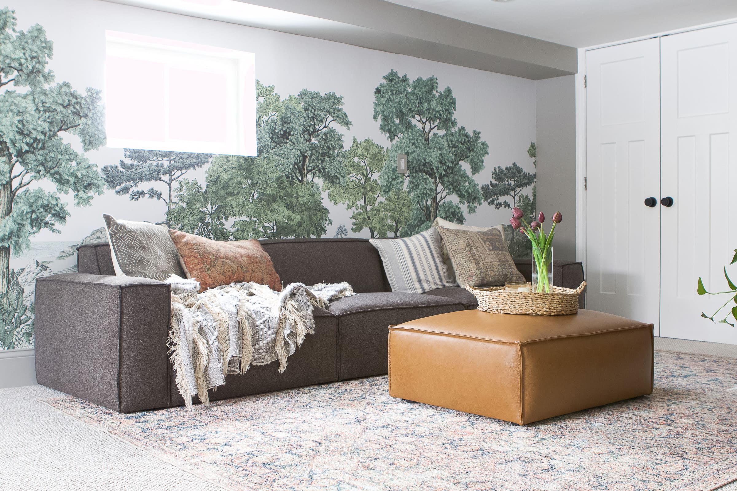 Yes! Absolutely. If you donโt love your carpet, the easiest fix is to layer a rug you love on top. Plus, I think it’s a great way to create zones in a large space, while adding color and life. That’s what we did in the living space in our basement. I like to use this carpet tape to keep it in place.