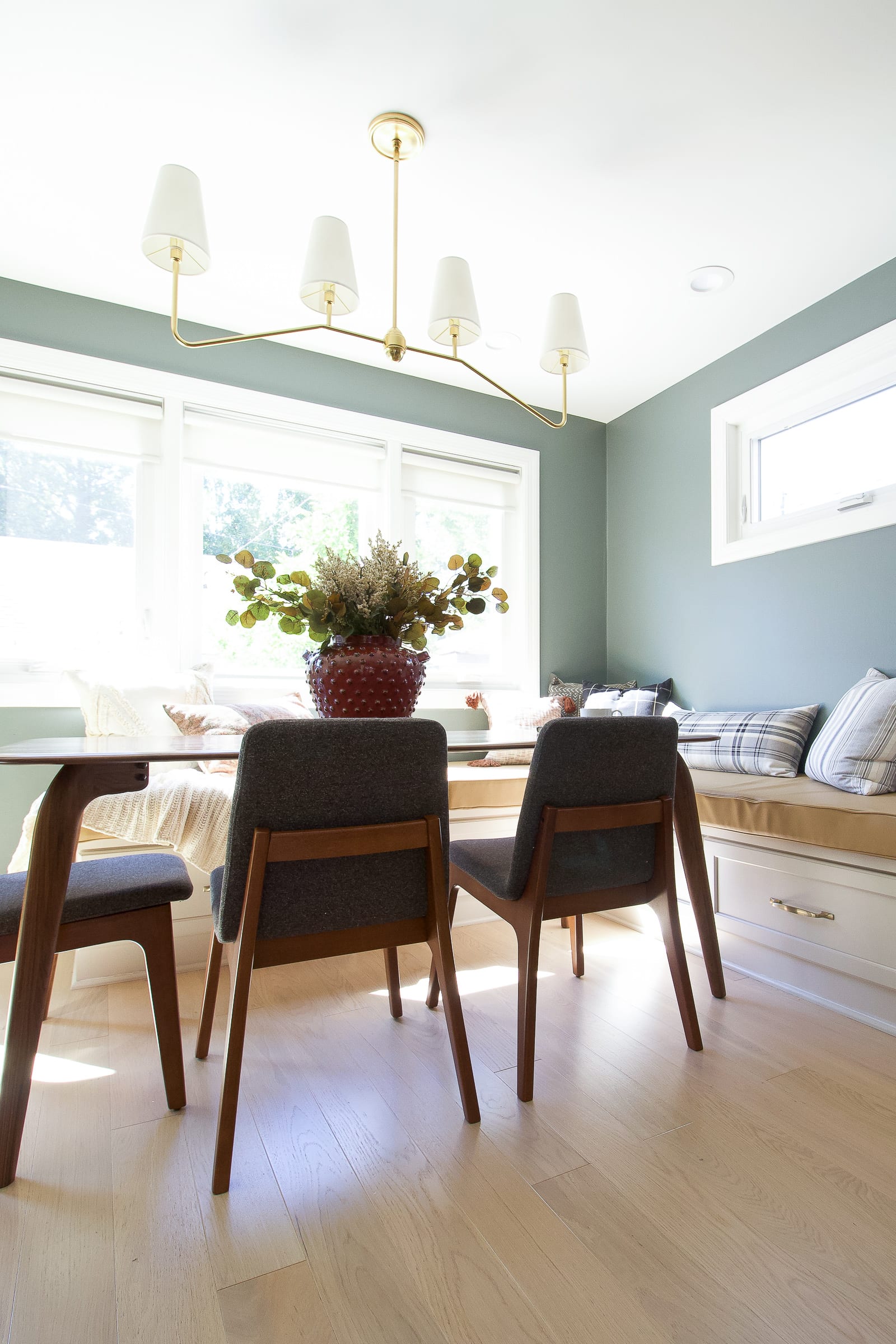Your new home may have come with generic blinds that get the job done. However, I don’t think window treatments should be an afterthought. I love the texture of woven shades on a window and you can’t beat the drama that comes with choosing the right curtains for a room. Just look at our living room, for example. The green linen curtains add so much warmth and color to this neutral space.